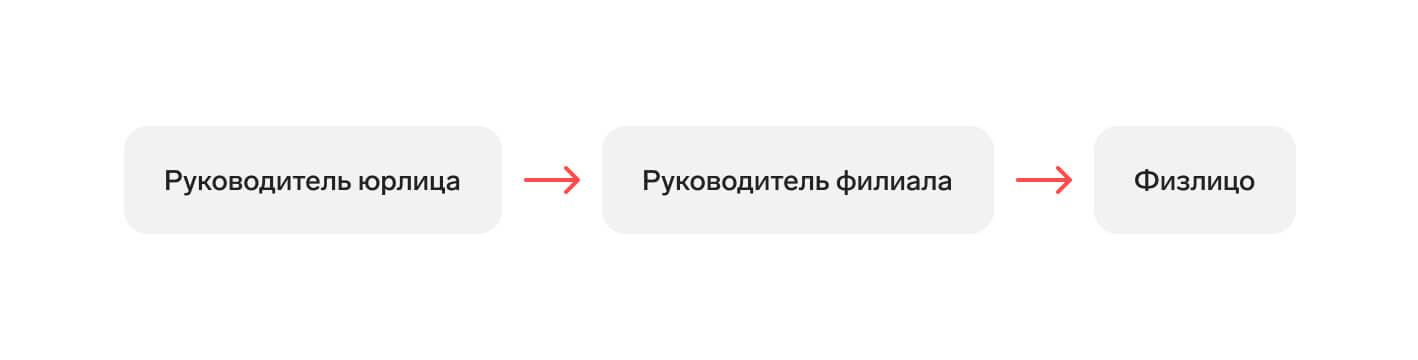 Цепочка № 3: Юрлицо передает право физлицу-руководителю филиала, а тот, в свою очередь, — еще одному физлицу